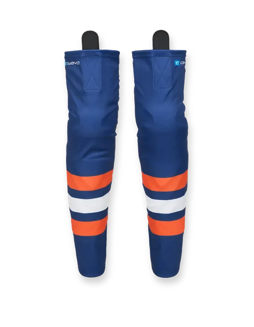 The HSV5 Pro Hockey Socks are not only functional and light weight, making them dry extremely fast, but give you plenty of custom design possibilties to make them match your jersey. The come in different lengths and have elastic properties that provide an anatomic fit that will help keep your shin pads in place. These socks come with integrated Velcro so you can fasten these to your jock system for maximum comfort